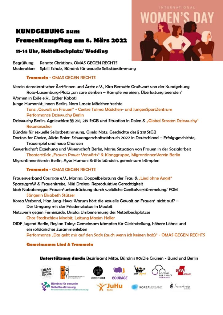 am 08. März 2022 ist wieder Frauen*kampftag und wir möchten Euch zu einer bundesweiten
