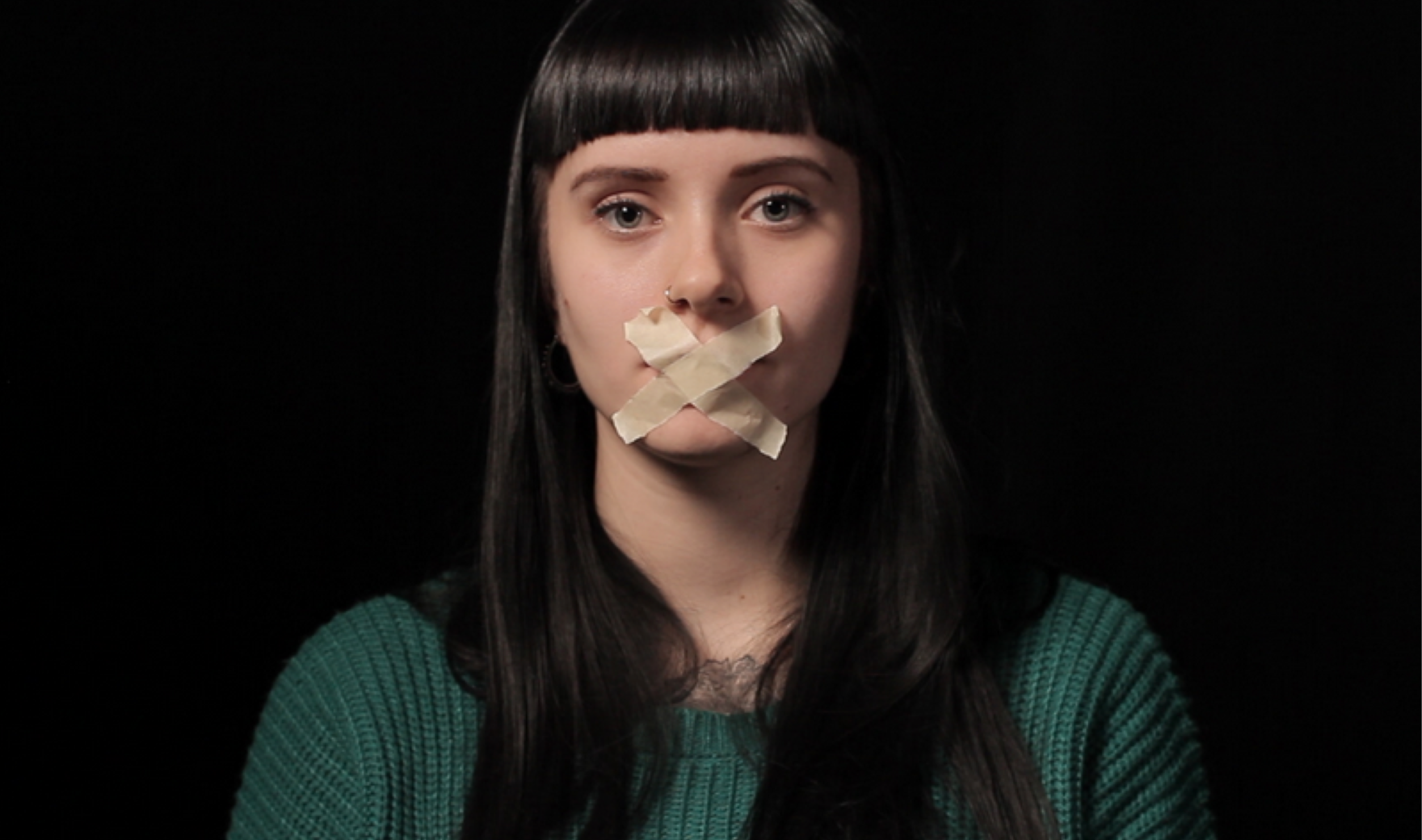 - Macht ein Portraitfoto von euch mit zugeklebtem Mund und der Aufschrift § 219a StGB.